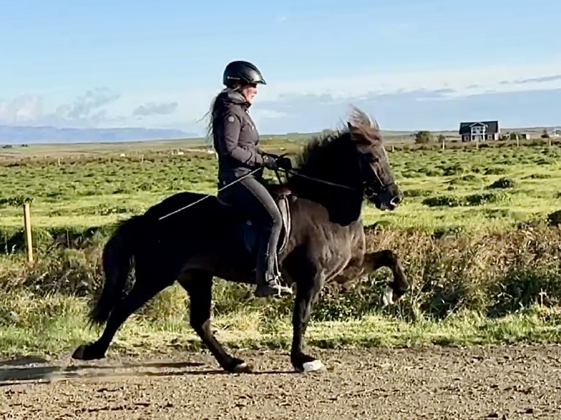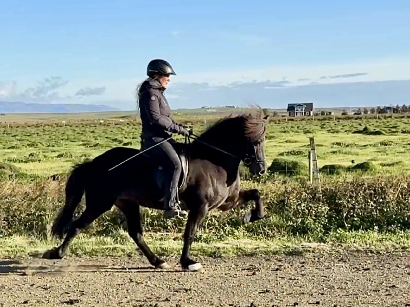 Blakksdóttir ist ein 6j., 141cm grosse, wunderschöne 5g Elitestute, welche mich beim Kennenlernen extrem verzaubert. (Diese Augen...schmelz) Mit ihrem wunderschönen Äusseren und dem grossrahmigen sehr kompletten 5g Material ist sie eine Stute, welche nicht nur für den Sport hoch interessant ist sondern ebenso für die Zucht ein wahres Sahnestückchen. Sie stammt aus einem bewegungsextremen, weltberühmten 4g ab sowie einer hochgeprüften Skyr Tochter, welches sie züchterisch ganz besonders interessant macht. SIe begeistert mit hochweitem, sehr trakgräftigem Tölt, grossrahmigem, schwungvollen Trab, gutem Galopp und stets taktsicherem, einfachstem Rennpass. Ihr Charakter ist über alles liebenswert, sehr entspannt und immer beim Reiter mit positivstem Vorwärtsdenken, sehr sicher und immer relaxed. Ich sehe die Stute als erstklassiges Young Rider Sportpferd und dort im hohen Sieger Level oder aber im sehr guten LK1 Bereich bis um 7 Punkte in der F1 Kombination. Sie ist erstklassiges ausgebildet, kann alle Lektionen und ist eine wahre Freude im täglichen Training. Wunderschönes, edles Sport und Zuchtmaterial für all die, die das Besondere lieben. Unter 26.000€