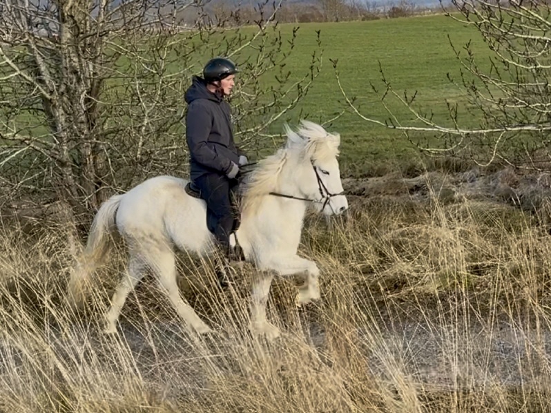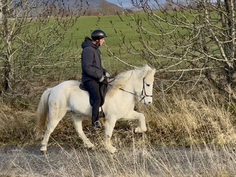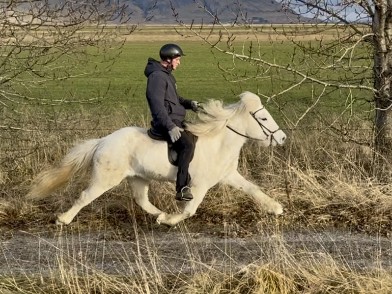 Gráni ist ein 13j, 143cm grosser, herzallerliebster Schimmelwallach, welcher in seiner Trainer Familie bis dato als P3 Spezialist erfolgreich eingestzt wurde und nebenbei eines der Lieblingsreitpferde in der Familie ist. Der routinierte Wallach ist feinst ausgebildet, butterweich und leicht in der Hand und hat ein Herz aus Gold. Unglaublich ehrlich und liebenswert, jedoch gepaart mit dem nötigen Temperament und Biss auf der Passbahn wenn es drum geht dazu jederzeit feinst in der Hand, regulierbar und klarst im Köpfchen. Seine Gangverteilung ist 5g easy mit viel softem, taktklaren Tölt mit schicker Bewegung, sehr gutem Trab und Schritt und aktuell nicht gearbeitetem Galopp, da dies kontraproduktiv für eine Passrennkarriere ist. Ich sehe den meisterlichen Schimmel hocherfolgreich in den Passdisziplinen der Jugend oder Erwachsenenklasse in sicheren um die 7.50 Zeiten. Denke mit noch mehr Detail Orientierung sind ebenso unter 7.50er Zeiten möglich. Mit sehr konstantem 7.50 bis 7.90 sec Resumee überzeugt er als Routinier in dieser Disziplin ist aber jedoch ebenso der gewünschte Allrounder für alle Abenteuer zu Hause. Unter 12.500€
