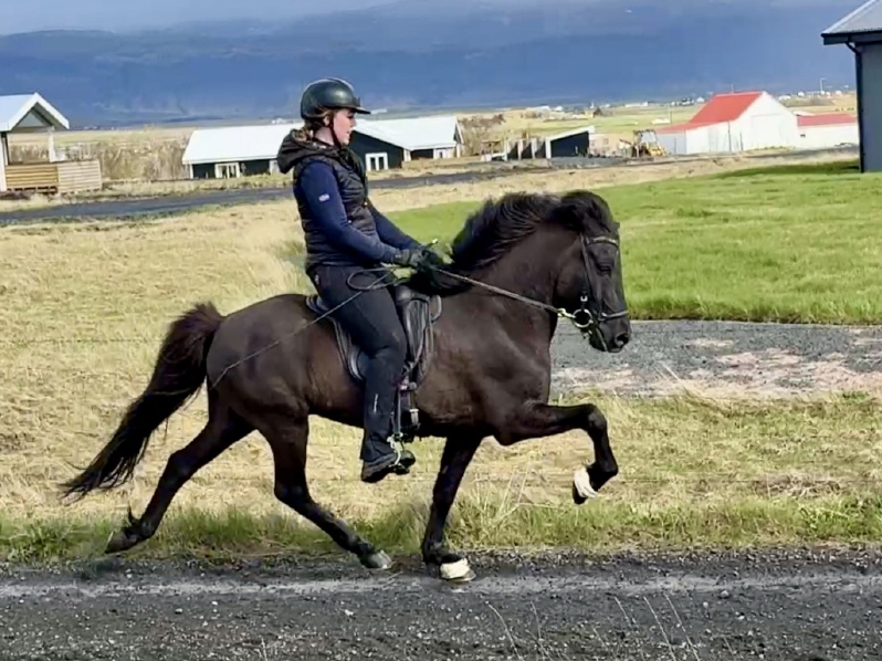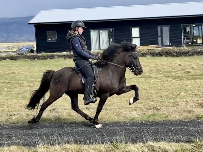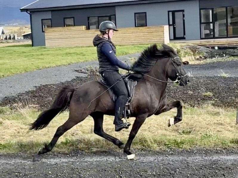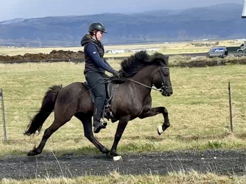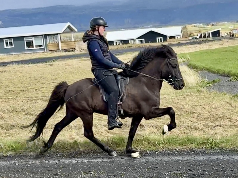 Kaldi ist ein 10j, 142cm grosser, totschicker, Rappwallach, welcher bis dato sein Dasein bei seinem Besitzer im gehobenen Freizeitbereich sowie unter einer Schülerin der Hólar Universität in allerfeinster Ausbildung verbrachte. Er verfügt über 5 wahnsinnig tolle Gänge, wunderbar hochweit und soft durch den Körper, wobei seine Töltqualität dabei herausragend rüberkommt. Butterfeinst in Hand und Maul steht der schicke Rappe an den Hilfen und begeistert mich beim Test Drive mit dem überragend sportlich fertigen Reitgefühl für sofortige Starts. Er bringt angenehmes Temperament, für absolut jeden von Klein bis Gross, zu reiten mit und ich sehe Kaldi am liebsten in sportorientierter Reiterhand oder aber dem edlen nur das Beste wollenden Freizeitbereich in der Zukunft. Ob in F1, T1 oder T2 Kaldi wird diese Aufgaben souverän um die 7 Punkte meistern können. Erstklassiges Kinder und Jugend Pferd sowie, Juwel für jemanden, der alles inklusive dem besten Freund in seinem Pferd haben möchte. Er ist ein personenbezogener, sehr warmherziger Wallach, welchem die Türen im Sport des guten 7 er Bereichs weit offen stehen. Traumpferd auf ganzer Linie. Unter 20.000€