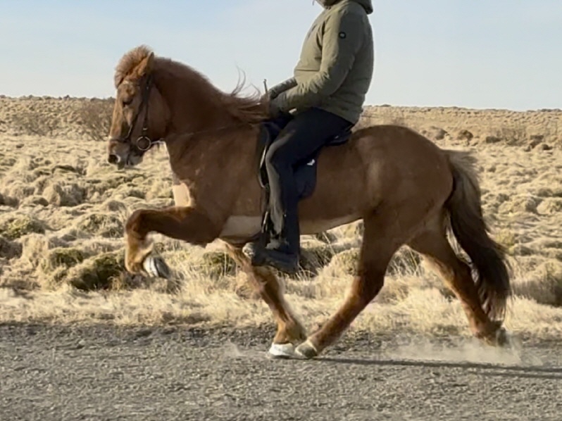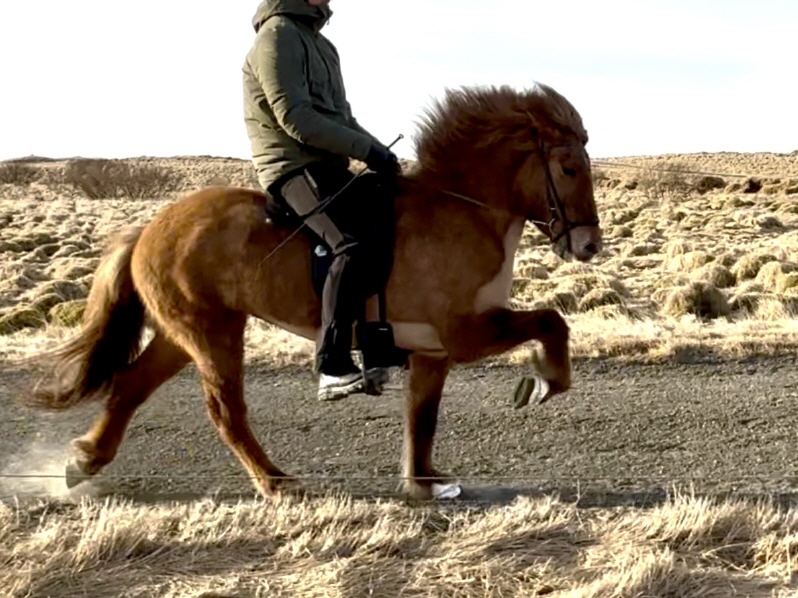 Miss Ó ist eine knapp 6j, 140cm grosse, 4g Stute, welche bis dato insgesamt ca 7 Mon grundausgebildet unter dem Sattel ist und über extrem extravagant hochweites Bewegungs Potential verfügt. Sie ist eine wie ich es immer gerne nenne, gängige 4g Stute, mit ganz viel Tölt und grossen Grundgangarten, welche ab sofort mit noch mehr Detail dressurmässiger Arbeit den Weg einer steilen Sportkarriere in T1 und V1 einschlagen wird. Hätte ich nicht genug eigene Pferde, wäre sie nicht hier auf der Seite jetzt. Sie ist genau mein Beuteschema!. Fein und äusserst höflich im Umgang mit wunderschönem Temperament und dem besten Charakter den man sich denken kann bei diesen grossrahmigen, Bewegungen. Ich sehe die Stute als Zukunftsprojekt für jeden guten Selbstausbilder, welcher ein shoch pektakuläres Pferd für den ganz hohen 7 er Bereich der Zukunft in T1 und V1 sucht. Wer das Auge hierfür hat wird die Nase vorn haben. :) Mega Material! Unter 17.000€