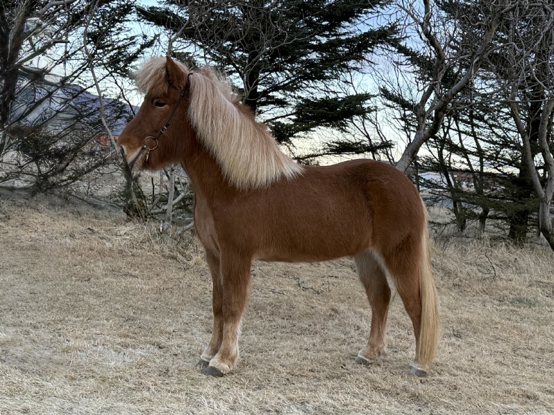 Ýr ist eine 7j, 142cm grosse, sehr hübsche Fuchsstute, welche aus einer 7.87 gesamt gepr. 5g Mutter sowie dem hochgeprüften Kiljan Sohn Rauðskeggur frá Kjarnholtum I abstammt. Die junge Stute ist gut in ihrer Besitzer Amateur Trainerhand ausgebildet und in dieser Familie bis dato mit Freude genutzt. Sie begeistert mich beim Kennenlernen mit schicker 4g Verteilung mit schöner Bewegung, Selbstsicherheit, Souveränität, sowie gutem Go und sie ist es gewohnt alleine oder in der Gruppe in jeder Lebenslage geritten zu werden. Ich sehe die schicke Fuchsstute in jeglicher Freizeitreiterhand ob jung oder alt, in einer edlen Reitschule oder aber als weiter Selbstausbilde Projekt jedes engagierten Isi Liebhabers, welcher Spass an kleinen Turnieren und Lehrgängen mit seinem Schatz hat. Schnäppchen Alarm Unter 5.800€