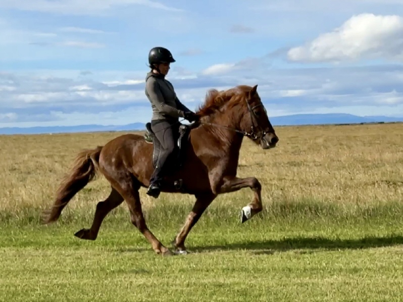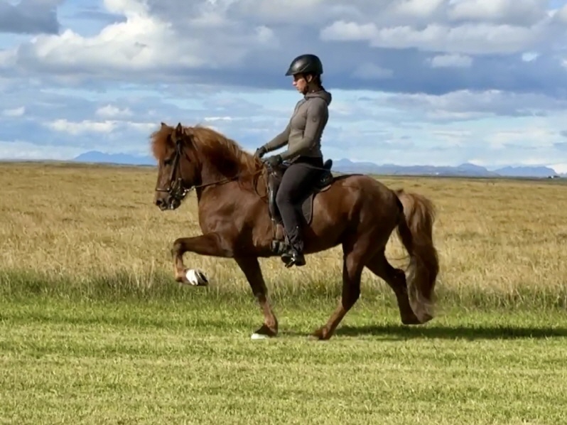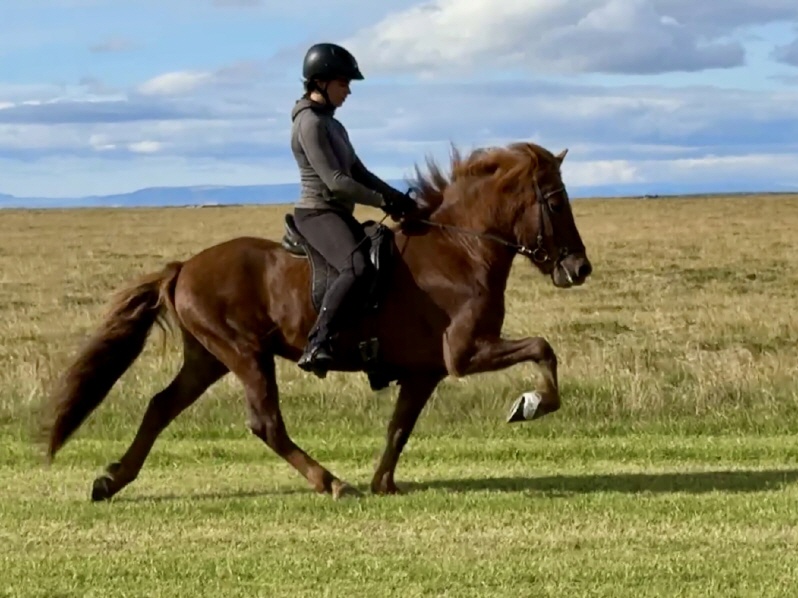 Villingur ist ein 6j, 143 cm großer, fundament starker Fuchswallach, welcher sich mir vor einigen Tagen beim Ausprobieren und filmen extrem sportattraktiv präsentierte. Ganz im klassischen 4g Typ, welchen viele von Euch so lieben stehend, begeistert Villingur mit einem grossrahmigen Viergang Paket mit hochweiter, bodysofter Bewegung, traumhaft schwungvollen Grundgangarten und viel viel Potential um mit weiterer Entwicklung ein top Sportpferd im guten 7 er Bereich zu werden. Der junge Wallach wurde vor einigen Wochen erstmals in der Viergangprüfung eines hiesigen WR Turniers prämiert und konnte bereits jetzt mit 7 er Noten in einzelnen Gängen glänzen. Sein Charakter beschreibt sich am besten mit Worten wie Teddybär und Kuschelwilli, er ist entspannt, ausgeglichen, bulletproof und stellt sich immer intuitiv auf seinen Reiter ein. Ich sehe ihn unter Reitern der Jugendklassen ebenso wie unter jedem Erwachsenen mit dressurmäßigen Grundlagen und ich bin überzeugt, hier sehen wir einen hoch erfolgreichen Viergänger der Zukunft. Unter 20.000€