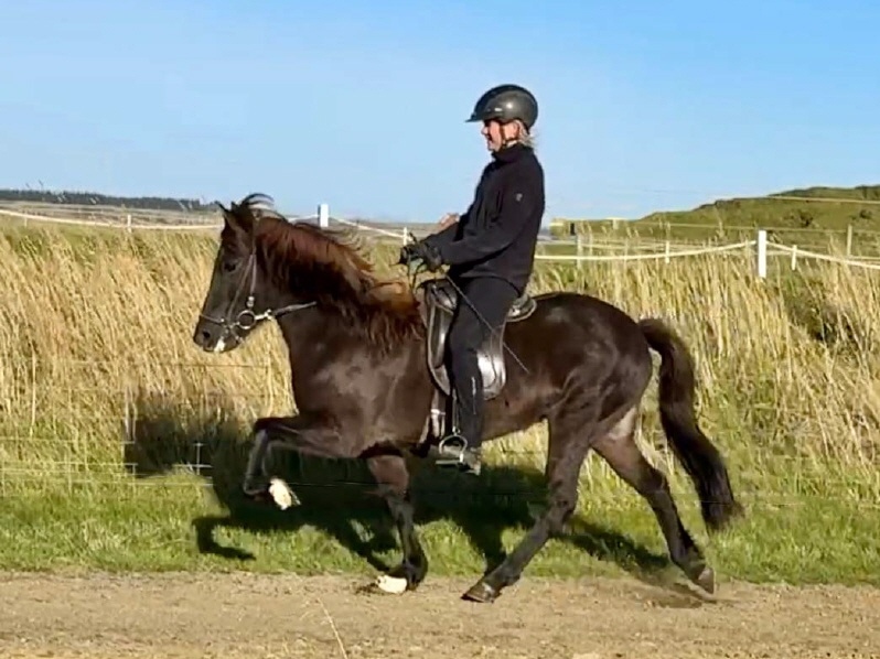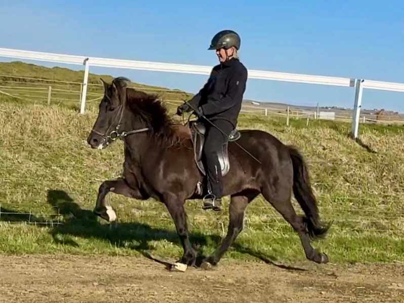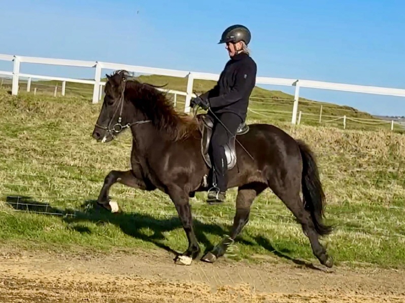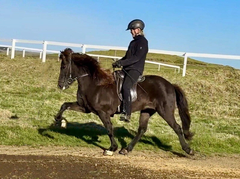 Vonardís ist eine 9j, 142cm grosse, wunderschöne 5g Rappstute, welche mich beim Kennenlernen und Probereiten direkt verzaubert. Neben ihrem eleganten, sehr harmonischen Exterieur begeistert Vónardís mich mit ganz exzellenten, bewegungsschicken wie leichtrittigsten Ganganlagen mit stets bestem Takt, schöner Haltung sowie Tempovarianz. Sie steht höflichst an den Hilfen, hat ein gutes Temperament, welches am kleinen Finger stets regulierbar ist und dazu einfachen, sicheren Rennpass. Die Stute ist für mich der Innbegriff eines perfekten 5g Pferdes mit 5 sehr guten, stets einfachst abrufbaren, leichtrittigen Gängen mit schickster Vorhandbewegung, was sie zu einem hervorragenden Sportpferd jeder Klasse macht, wie auch auf Wunsch zum besten Luxusreitpferd, das man sich denken kann. Ich sehe die bezaubernde Stute in jugendlicher 5g Einsteiger Hand oder jedes jungen oder erwachsenen Reiters, welcher im Sport oder zu Hause mit dem Pferd wachsen und sich weiterbilden möchte. Mega schöne, sehr einfache, feine 5g Stute. Unter 10.000€