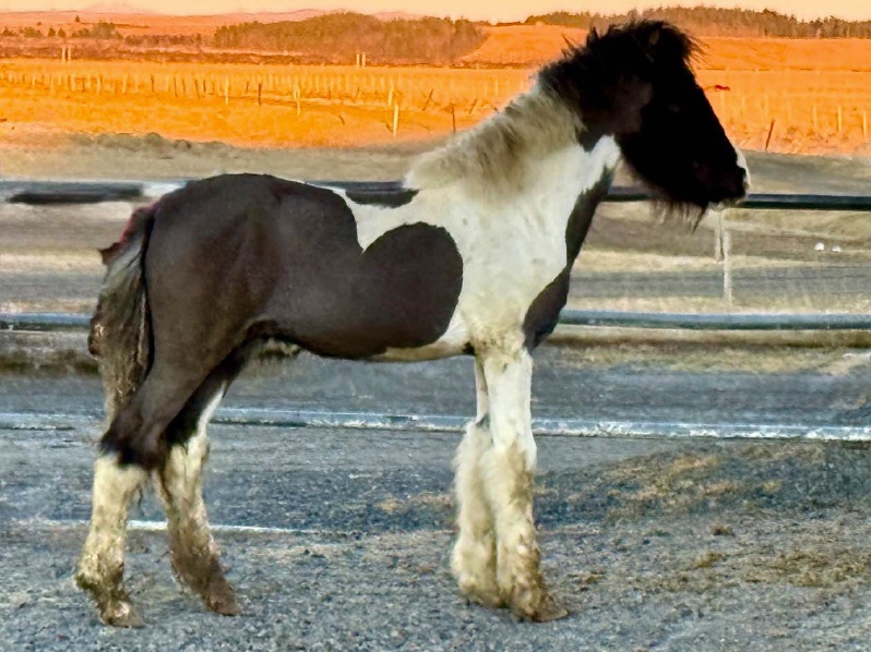 Draumey frá Karlshaga ist ein bildschönes Rappscheck Stutfohlen aus einer 4g Elite Draupnir Tochter (8.13 gesamt 4g) sowie Feykir frá Stóra-Vatnsskarði (8.57 gesamt 4 jährig), dem 2024 grosses Aufsehen erregenden Superstar aus ebenso starker Blutlinie. Draumey begeistert aktuell mit grossem Trab mit viel Schwung und super Bewegung unter sich selbst und üerzeugt mit einem Traum Exterieur mit langen Beinen sowie wunderschöner Halsung sowie Oberlinie. Das Fohlen kann durch mich auf Wunsch in Top Aufzucht Möglichkeit in Island weiterhin bleiben, wo ich meine eigenen Zuchtpferde habe und oft bin. Ebenso gewährleiste ich auf Wunsch eine Top Grundausbildungs Trainer Adresse in der Zukunft. Unter 14.000€ VB
