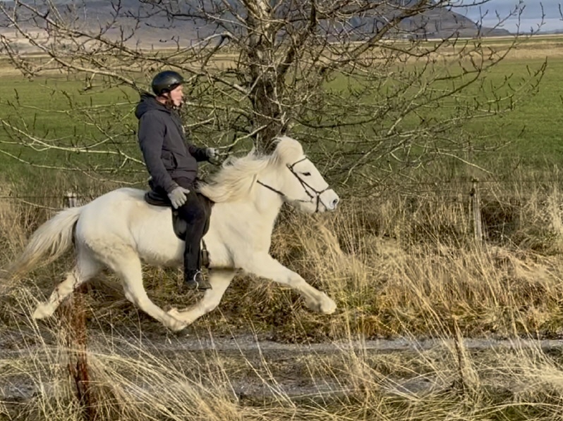 Gráni ist ein 13j, 143cm grosser, herzallerliebster Schimmelwallach, welcher in seiner Trainer Familie bis dato als P3 Spezialist erfolgreich eingestzt wurde und nebenbei eines der Lieblingsreitpferde in der Familie ist. Der routinierte Wallach ist feinst ausgebildet, butterweich und leicht in der Hand und hat ein Herz aus Gold. Unglaublich ehrlich und liebenswert, jedoch gepaart mit dem nötigen Temperament und Biss auf der Passbahn wenn es drum geht dazu jederzeit feinst in der Hand, regulierbar und klarst im Köpfchen. Seine Gangverteilung ist 5g easy mit viel softem, taktklaren Tölt mit schicker Bewegung, sehr gutem Trab und Schritt und aktuell nicht gearbeitetem Galopp, da dies kontraproduktiv für eine Passrennkarriere ist. Ich sehe den meisterlichen Schimmel hocherfolgreich in den Passdisziplinen der Jugend oder Erwachsenenklasse in sicheren um die 7.50 Zeiten. Denke mit noch mehr Detail Orientierung sind ebenso unter 7.50er Zeiten möglich. Mit sehr konstantem 7.50 bis 7.90 sec Resumee überzeugt er als Routinier in dieser Disziplin ist aber jedoch ebenso der gewünschte Allrounder für alle Abenteuer zu Hause. Unter 12.500€