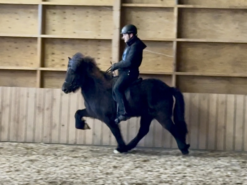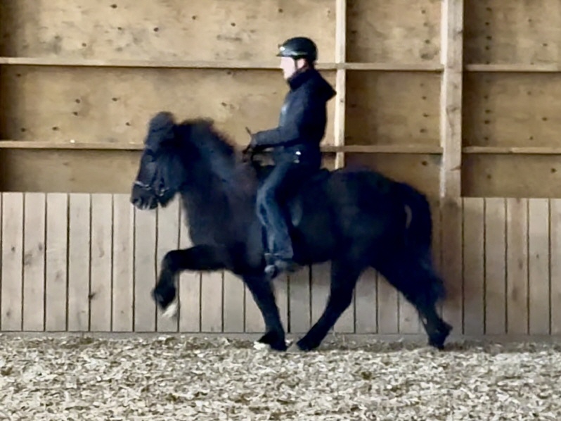 Krúna ist eine knapp 5j., 141cm grosse, zuckersüsse Rappstute, welche bis dato gesamt erst ca. 4 Monate angeritten ist. Sie bringt einen unglaublich entspannten, einfachen, höchst liebenswerten Charakter mit sich, welcher ihre hochtalentierten 5g veranlagten Gangattribute perfekt untermalt. Viel Tölt mit schickster Bewegung sowie ultra schicke Grundgänge bei toller Vorhandbewegung beschreiben ihr Gangwerk am besten. Ich sehe die für absolut jeden zu reitende, junge Stute zukünftlich im Sport der V1/T2/T1 oder als ultra sicheres Kinder-Jugend-Family Pferd jedes auferlegte Abenteuer meistern, ob sportlich oder abseits der Ovalbahn. Hervorragendes Selbstausbilde Projekt für die sportliche Zukunftskarriere oder aber der partner in crime für alle zu Hause. Unter 9.000€