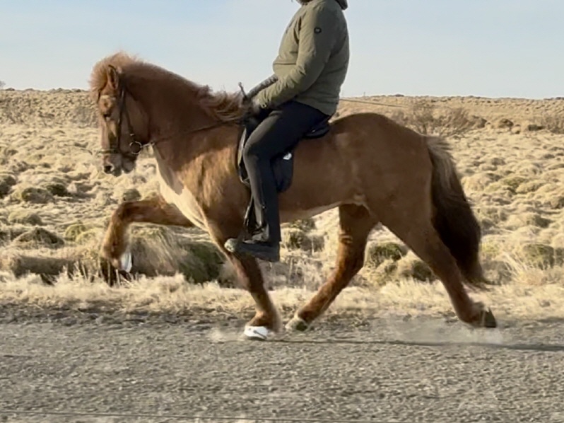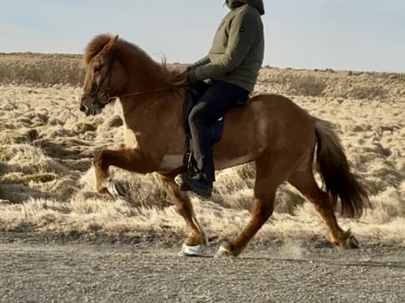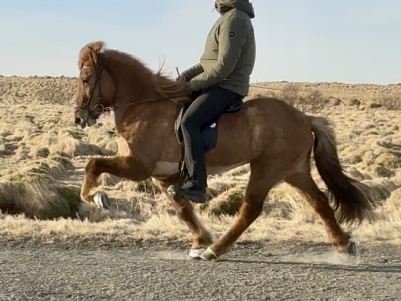 Miss Ó ist eine knapp 6j, 140cm grosse, 4g Stute, welche bis dato insgesamt ca 7 Mon grundausgebildet unter dem Sattel ist und über extrem extravagant hochweites Bewegungs Potential verfügt. Sie ist eine wie ich es immer gerne nenne, gängige 4g Stute, mit ganz viel Tölt und grossen Grundgangarten, welche ab sofort mit noch mehr Detail dressurmässiger Arbeit den Weg einer steilen Sportkarriere in T1 und V1 einschlagen wird. Hätte ich nicht genug eigene Pferde, wäre sie nicht hier auf der Seite jetzt. Sie ist genau mein Beuteschema!. Fein und äusserst höflich im Umgang mit wunderschönem Temperament und dem besten Charakter den man sich denken kann bei diesen grossrahmigen, Bewegungen. Ich sehe die Stute als Zukunftsprojekt für jeden guten Selbstausbilder, welcher ein shoch pektakuläres Pferd für den ganz hohen 7 er Bereich der Zukunft in T1 und V1 sucht. Wer das Auge hierfür hat wird die Nase vorn haben. :) Mega Material! Unter 17.000€