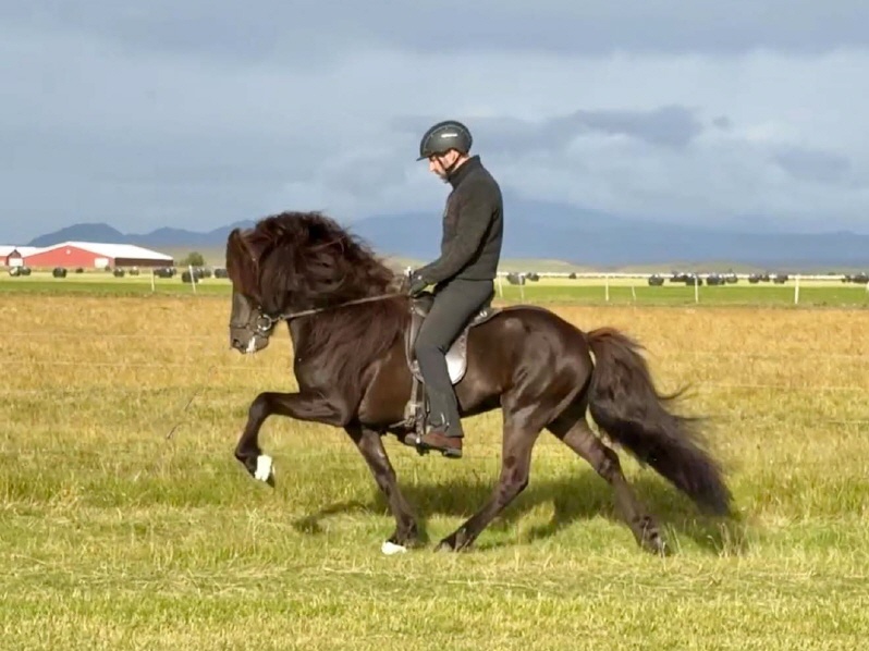 Seiður ist ein 7j, 147cm grosser, wie aus dem Bilderbuch geschnittener, bildschöner Rapphengst aus einer der bewegungs spektakulärsten Blutlinien Islands. Er begeistert mich mit hochweiten, extravaganten Moves und wunderschöner Silhouette, ist sehr gut ausgebildet und hat den Charakter eines Gewinners: Selbstsicher, in sich ruhend, unerschrocken und mit perfektem, positiven Arbeits und Perform Temperament. Championhaftes Reitgefühl beim Ausprobieren vollenden meine Meinung zu diesem Traumpferd. Ich sehe den wunderschönen Hengst überragend in jeder T2 und V1 der Zukunft unter jeglichem ambitionierten Sportreiter ob jung oder alt in den hohen 7 er Noten brillieren. Sehr gutes, weltmeisterliches :) Preis Leistungsverhältnis. Mehr info bekommt ihr gerne per mail von mir. Unter 30.000€