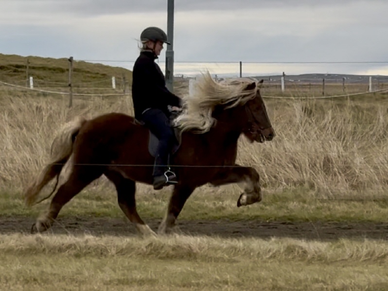 Stuðla-Björg ist eine 5j, 138cm grosse, knusper süsse 5g Stute, welche mit ihrer immer taktklaren bewegunssschicken Tölt wie Gangqualität sowie ihrer grandios talentierten, einfach zu reitenden Pass Qualität beim Video Dreh und Probereiten überzeugt. Die junge Stute ist insgesamt ca 10 Monate geritten und wurde bis dato exakt 3 mal gelegt. Ihre Sicherheit, Streckung und Balance im Pass sind hervorragend und sehe ich in ihr ausser dem snatchigen Freizeitpferd ebenso das perfekte zukünftige Einsteiger 5g Pferd für Jung und Alt oder das Zukunftspasspferd, das man sich hier sicher sehr erfolgreich aufbauend ausbilden kann. Ihr Temperament ist angenehm toll vorwärtsdenkend sie reagiert gut auf alle Hilfen ist fein im Umgang und lernt schnell. Ich sehe sie als Weiterbild und Weiter Ausbilde Projekt für jeden budget orientierten Selbstausbilder sowie als talentiertes Pass oder 5g Pferd für alle Klassen Jugend bis LK2. Unter 7.000€